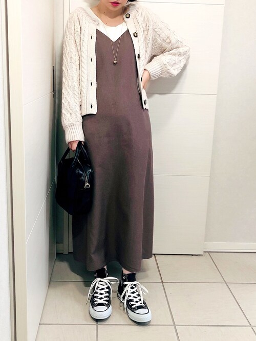 シャツワンピースを使った ざっくりニットカーディガン のレディース人気ファッションコーディネート Wear